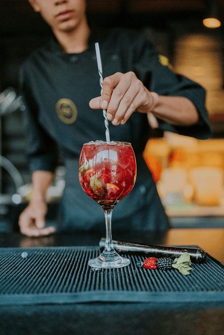 Our mobile bar (optional), bar tools, bartending staff, garnish station, custom signage, and more.